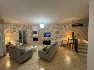 Trzysypialniany apartament w Πέτρινη ιδιωτική βίλα με πισίνα wyposażono w bezpłatne Wi-Fi, telewizor, pralkę oraz kuchnię z lodówką i piekarnikiem. Ręczniki i pościel są dostępne w apartamencie Πέτρινη ιδιωτική βίλα με πισίνα.