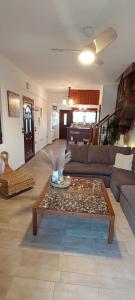 The hot tub and fireplace are the special features of this holiday home. Featuring a private entrance, this air-conditioned holiday home comprises 1 living room, 3 separate bedrooms and 3 bathrooms with a bath and a shower. Guests will find a stovetop, a refrigerator, kitchenware and an oven in the fully equipped kitchen. The holiday home also provides guests with a barbecue. The spacious holiday home provides a washing machine, a seating area, a wardrobe as well as a terrace with sea views. The unit offers 4 beds and 1 futon.