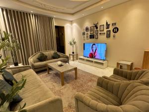 Apartament شقة فاخرة غرفتين وصالة النرجس ١٥ z 2 sypialniami oferuje salon z TV, kuchnię i łazienkę.