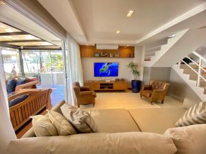 The spacious holiday home comes with 4 bedrooms, a TV and a fully equipped kitchen that provides guests with an oven, a microwave, a washing machine, a fridge and a stovetop. Towels and bed linen are featured in the holiday home at the property. For added privacy, 415 - Casa frente mar para alugar Bombinhas com 4 suítes features a private entrance.
