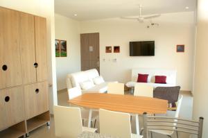Rooms: 1This apartment features a pool with a view. This spacious apartment features 1 living room, 2 separate bedrooms and 3 bathrooms with a shower and free toiletries. Meals can be prepared in the well-fitted kitchen, which has a stovetop, a refrigerator, kitchenware and an oven. Boasting a terrace with sea views, this apartment also features air conditioning and a flat-screen TV with cable channels. The unit is furnished with 5 beds.