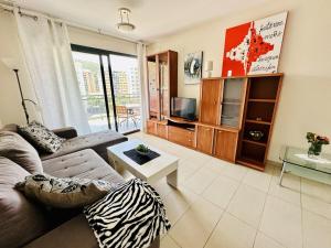 This spacious apartment features 1 living room, 1 separate bedroom and 1 bathroom with a bath. The well-fitted kitchen features a refrigerator, a dishwasher, kitchenware and an oven. The apartment has air conditioning, a washing machine, a tea and coffee maker as well as a terrace with sea views. The unit has 3 beds.
