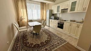 Klimatizovaný apartmán v ЖК Өркендеу светлые и просторные апартаменты в центре города по улице Абая рядом с метро má 2 ložnice, 1 koupelnu a plně vybavenou kuchyň. Apartmán má také koupelnu.