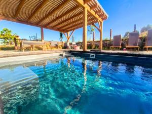 This holiday home features a pool with a view. Boasting a private entrance, this air-conditioned holiday home features 1 living room, 2 separate bedrooms and 1 bathroom with a shower and a hairdryer. Guests can make meals in the kitchen that has a stovetop, a refrigerator, a dishwasher and kitchenware. Featuring a terrace with garden views, this holiday home also features a washing machine and a flat-screen TV with streaming services. V této ubytovací jednotce se nachází 2 postele.
