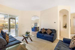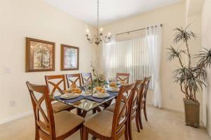 The spacious holiday home has 5 bedrooms, 5 bathrooms, bed linen, towels, a flat-screen TV with streaming services, a dining area, a fully equipped kitchen, and a terrace with pool views. The air-conditioned unit at 527 - Beautiful Mediterranean Style Villa Close to Disney with Private Pool and Spa features a hot tub and a dressing room. 527 - Beautiful Mediterranean Style Villa Close to Disney with Private Pool and Spa includes an outdoor dining area.