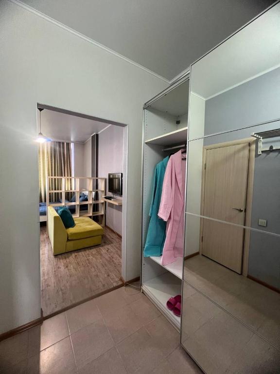 Con accesso a un balcone, l'appartamento climatizzato di Красивая квартира в центра города Шымкент Жк Рахат Кунаева 38б comprende 1 camera da letto e cucina attrezzata. Presso Красивая квартира в центра города Шымкент Жк Рахат Кунаева 38б è disponibile una TV a schermo piatto.