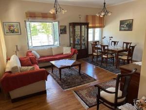 This holiday home's standout feature is the fireplace. This air-conditioned holiday home includes 1 living room, 2 separate bedrooms and 2 bathrooms with a bath. Guests will find a stovetop, a refrigerator, a dishwasher and an oven in the well-equipped kitchen. The holiday home also features a barbecue. Boasting a terrace with garden views, this holiday home also offers a washing machine and a flat-screen TV. The unit has 5 beds.