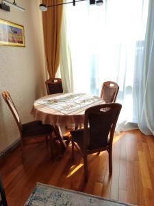 Das klimatisierte Apartment Резиденция Изумруд bietet 1 Schlafzimmer, einen Flachbild-Kabel-TV, einen Essbereich, eine Küche mit Kühlschrank sowie ein Wohnzimmer.