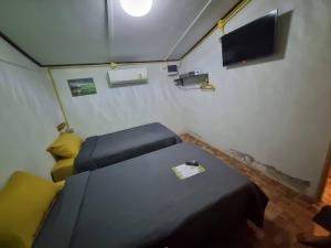 This double room is air-conditioned and has a private bathroom, a tea and coffee maker and garden views. The unit has 3 beds.