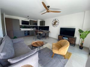 Featuring a private entrance, this apartment consists of 1 living room, 2 separate bedrooms and 1 bathroom with a bath and a hairdryer. Guests can make meals in the kitchen that is equipped with a stovetop, a refrigerator, a dishwasher and an oven. Boasting a terrace with garden views, this apartment also provides a washing machine and a flat-screen TV with streaming services. The unit offers 3 beds.
