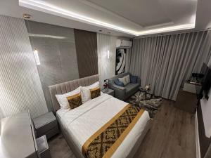 Klimatyzowany apartament استديو بأثاث انيق وموقع مميز posiada sypialnię i telewizor.