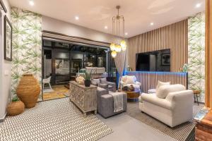 Zimmer: 1This luxurious holiday home offers a pool with a view, a hot tub and a sauna. Boasting a private entrance, this air-conditioned holiday home comes with 4 living rooms, 5 separate bedrooms and 8 bathrooms with a walk-in shower and a bath. Guests will find a refrigerator, a dishwasher, kitchenware and an oven in the well-equipped kitchen. The holiday home also includes a barbecue. The spacious holiday home features a washing machine, a minibar, a tea and coffee maker, a flat-screen TV with streaming services, as well as sea views. The unit has 6 beds.