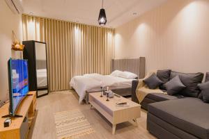 The apartment's kitchenette, which features a refrigerator and a microwave, is available for cooking and storing food. The apartment has parquet floors, a seating area with a flat-screen TV with streaming services, air conditioning, a tea and coffee maker, as well as a dining area. The unit has 2 beds.
