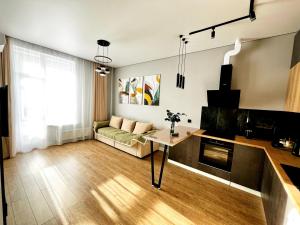 Apartament w Двухкомнатная квартира на Левом Берегу oferuje balkon, sypialnię, salon oraz doskonale wyposażoną kuchnię.