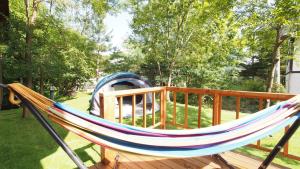 This holiday home features a hot tub. Boasting a private entrance, this spacious holiday home also features 4 separate bedrooms and 1 bathroom with a bath and a shower. The fully equipped kitchen has a stovetop, a refrigerator, kitchenware and a microwave. The air-conditioned holiday home features a flat-screen TV with streaming services, a washing machine, tatami, a dining area as well as garden views. The unit has 6 beds and 5 futons.