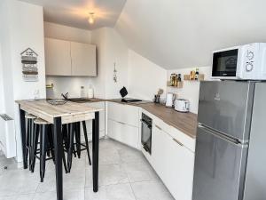 Dwupokojowy apartament Le 121 - Appartement 202 posiada kuchnię z lodówką i zmywarką oraz łazienkę z prysznicem, pralką i suszarką. Ręczniki i pościel są dostępne w apartamencie.