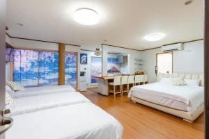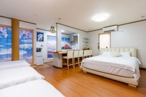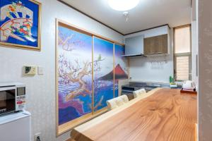The villa provides air conditioning, tatami, as well as a shared bathroom featuring a bath and a shower. The fully equipped kitchenette features a refrigerator, kitchenware, a microwave and an electric kettle. The unit offers 8 beds and 6 futons.