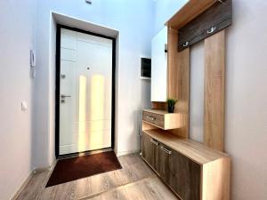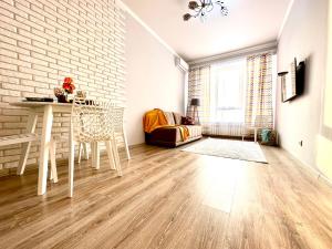 Klimatyzowany apartament z 1 sypialnią posiada również salon. W obiekcie Шикарная 2х комнатная квартира в ЖК Гагарин Парк znajduje się telewizor z płaskim ekranem.
