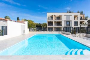 Apartmán A5 - Modern Studio 5 min to Sea - Pool & Garage zahrnuje 1 ložnici, plně vybavenou kuchyň s lednicí a mikrovlnnou troubou a 1 koupelnu se sprchou. V apartmánu ubytování nechybí posezení, pračka a koupelna s toaletními potřebami zdarma.