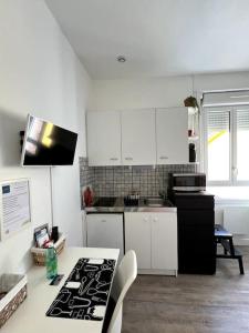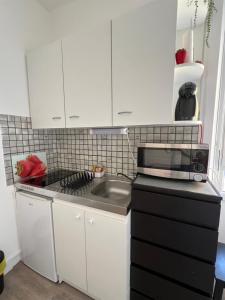 Questo appartamento ha 1 camera da letto, una cucina con frigorifero e microonde e 1 bagno con doccia e asciugacapelli. V 1 - Confortable studio près gare et centre-ville fornisce lenzuola e asciugamani ai propri ospiti.