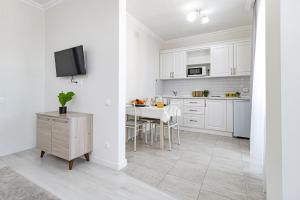 W apartamencie w Квартирка во Временах года- Лето znajduje się sypialnia, w pełni wyposażona kuchnia i balkon.