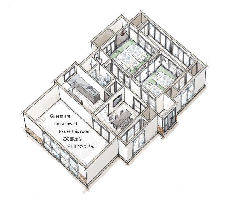 The air-conditioned holiday home features 2 bedrooms and 1 bathroom with a shower and a hairdryer. Guests can make meals in the kitchen that is equipped with a stovetop, a refrigerator, kitchenware and a microwave. The holiday home features a washing machine, tatami, a tea and coffee maker as well as tumble dryer. The unit offers 6 futons.