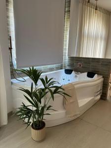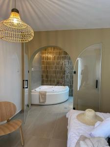 This double room features a hot tub. Guests will find a refrigerator, kitchenware, a microwave and a tea and coffee maker in the fully equipped kitchenette. The double room also provides guests with a barbecue. The spacious double room provides air conditioning, a private entrance, a terrace with garden views as well as a private bathroom featuring a bath. The unit offers 1 bed.