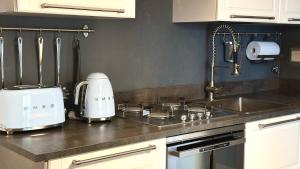 - Small kitchen area,