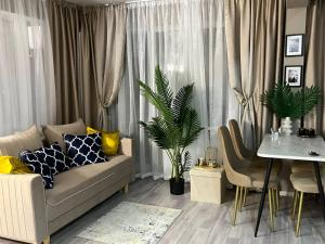 Kuchnia w apartamencie dostępna do gotowania i przechowywania żywności. Apartament wyposażony w klimatyzację, pralkę, telewizor z płaskim ekranem oraz balkon oferuje zakwaterowanie z 2 łóżkami.