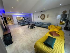 Featuring a private entrance, this air-conditioned chalet is comprised of 1 living room, 4 separate bedrooms and 4 bathrooms with a walk-in shower and a bidet. The chalet's kitchen, which features kitchenware and an oven, is available for cooking and storing food. The spacious chalet offers a seating area, a dining area, a wardrobe as well as a terrace with sea views. The unit offers 11 beds.