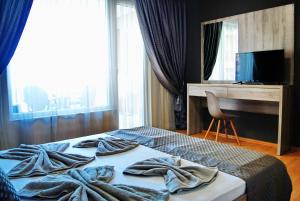 This air-conditioned apartment comes with 1 living room, 1 separate bedroom and 1 bathroom with a shower. Guests can make meals in the kitchen that features a stovetop, a refrigerator, an oven and an electric kettle. Boasting a terrace with sea views, this apartment also features a washing machine and a flat-screen TV. The unit has 2 beds.
