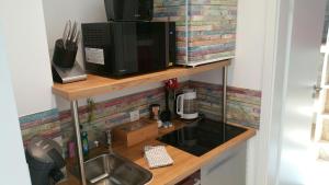 This apartment features a balcony, dishwasher and microwave. Kindly, please, be aware that the second large bed (king-size) is a loft bed and is accessible through a 2,50 m ladder.