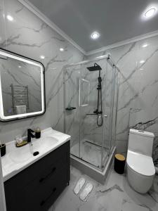 Gelegen 23 km von Atakent-Expo, 24 km von Dolphin Entertainment Centre und 24 km von Kasteev State Museum of Arts, bietet die Unterkunft Современные апартаменты Übernachtungsmöglichkeiten in Kaskelen. Die Unterkunft ist 23 km von First President of Kazakhstan Park entfernt und verfügt über kostenloses WLAN in der ganzen Unterkunft.