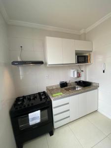 El apartamento con aire acondicionado en Ap 103 - Santa Monica, Uberlândia -MG tiene dos dormitorios, TV de pantalla plana y cocina con microondas y nevera. El apartamento Ap 103 - Santa Monica, Uberlândia -MG dispone de toallas y ropa de cama.
