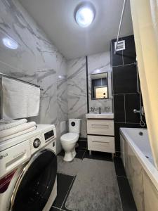 The well-equipped kitchen features a stovetop, a refrigerator, kitchenware and a microwave. This apartment has a washing machine, a private entrance, a flat-screen TV and a balcony. The unit has 1 bed.