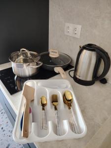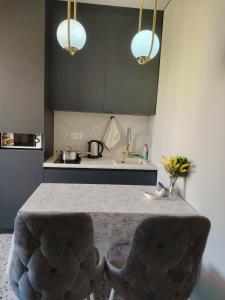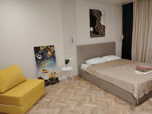 Das klimatisierte Apartment Просто красивая и уютная квартира mit Zugang zu einem Balkon besteht aus 1 separaten Schlafzimmer und einer voll ausgestatteten Küche.