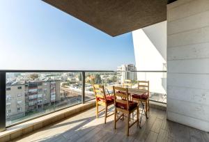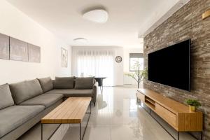 Das פנינת הקריות bietet eine klimatisierte Unterkunft mit 3 separaten Schlafzimmern, einem Wohnzimmer, einer Küche und 2 Bädern.