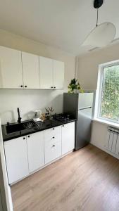 Tento apartmán v Уютная квартира в центре города má balkon, 1 ložnici, obývací prostor a dobře vybavenou kuchyň.