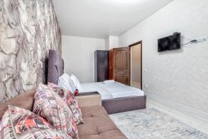 Уютная Евродвушка в центре левого берега Астаны is recently renovated and includes a living room with a flat-screen TV. The property is located 5 km from Expo 2017 Astana, 1.9 km from Saryarka Velodrome and 3 km from Alau Ice Palace. Free WiFi is available throughout the property and Bayterek Monument is 1.9 km away.