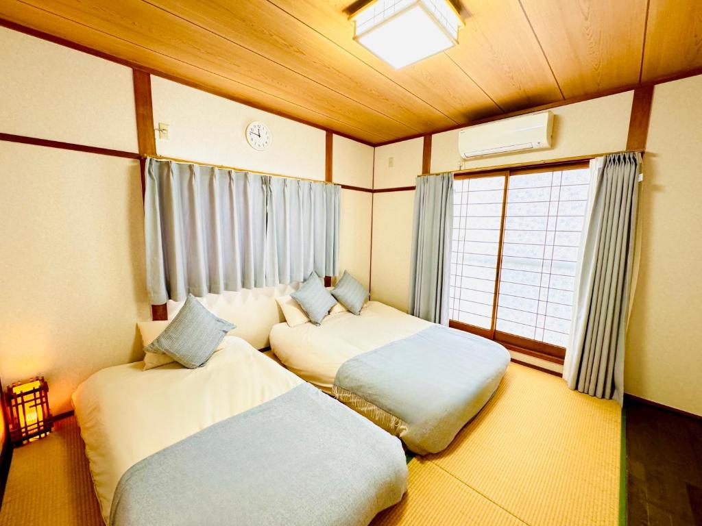 Boasting a private entrance, this air-conditioned holiday home includes 1 living room, 3 separate bedrooms and 2 bathrooms with a bath and a shower. In the well-fitted kitchen, guests will find a stovetop, a refrigerator, kitchenware and a microwave. The spacious holiday home offers a flat-screen TV, a washing machine, tatami, soundproof walls as well as city views. The unit has 5 beds.