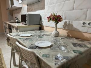 Apartmán v Уютная квартира в Астане zahrnuje 1 ložnici, obývací prostor s TV s plochou obrazovkou a plně vybavenou kuchyň.
