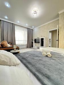 Obiekt Квартира посуточно usytuowany jest w miejscowości Taldykolʼ. Odległość od ważnych miejsc: Wieża widokowa Bäjterek - 3,2 km, Teren wystawy Expo 2017 Astana - 6,8 km, Nur-Astana Mosque - 1,7 km. Apartament Квартира посуточно oferuje darmowe WiFi, balkon i wyposażoną kuchnię.