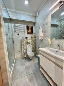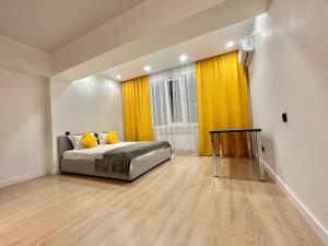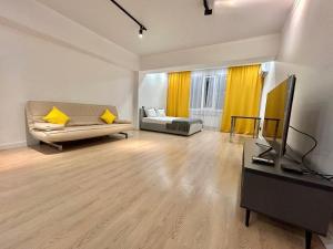 Klimatyzowany apartament Жк Молодёжный на Тулебаева z 1 sypialnią posiada również salon. W obiekcie znajduje się telewizor z płaskim ekranem.