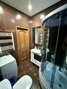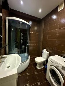 Guests can make meals in the kitchen that features a stovetop, a refrigerator, kitchenware and an oven. The air-conditioned apartment features a flat-screen TV with cable channels, a washing machine, a dining area, an electric kettle as well as city views. The unit has 2 beds.