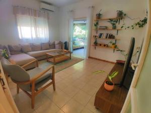 Klimatyzowany apartament z 1 sypialnią posiada również salon. W obiekcie דירה מדהימה במרכז תל אביב znajduje się telewizor z płaskim ekranem.