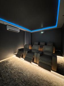 The 2-bedroom chalet is equipped with a living room with a flat-screen TV with streaming services, a fully equipped kitchen with an oven and microwave, and 4 bathrooms with hot tub. Guests at the property can enjoy a meal in the outdoor dining area with garden views. For added privacy, شاليه الرتاج هوم الفندقي has a private entrance and soundproofing.