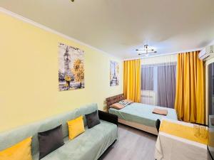 Квартира se encuentra en Frunze, a 2 km de Estación de tren Almaty 1, a 7,1 km de Raiymbek Batyr Metro Station y a 8,1 km de Almaty Central Mosque. El apartamento Квартира ofrece WiFi gratis, cocina totalmente equipada y un balcón.