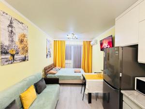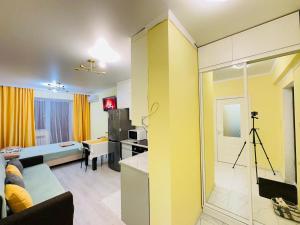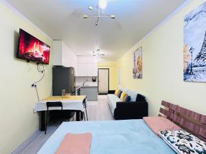 El apartamento de 1 dormitorio en Квартира ofrece TV de pantalla plana, aire acondicionado y sala de estar.