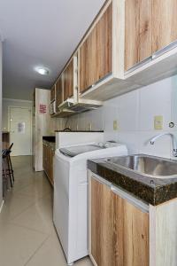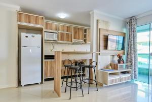 Das 026 - Apartamento em BOMBINHAS CENTRO 100 M DA AVENIDA PRINCIPAL umfasst eine klimatisierte Unterkunft mit 3 Schlafzimmern, Küche und 2 Bädern. Es gibt einen Flachbild-TV.