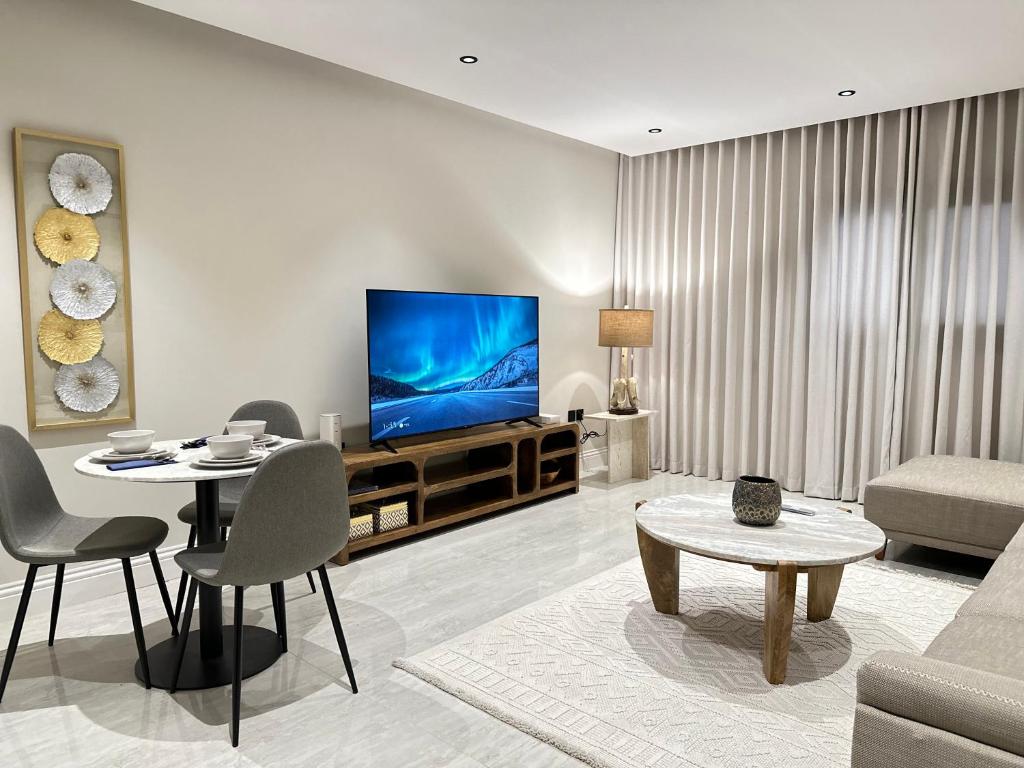 This apartment's special feature is the hot tub. This spacious apartment consists of 1 living room, 2 separate bedrooms and 2 bathrooms with a walk-in shower and free toiletries. Guests can make meals in the kitchen that is equipped with a stovetop, a refrigerator, a dishwasher and kitchenware. The air-conditioned apartment provides a flat-screen TV with streaming services, a washing machine, a private entrance, a tea and coffee maker as well as an inner courtyard view. The unit offers 2 beds.
